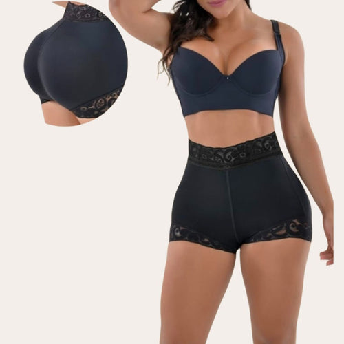 Mid-Rise Lace Waist Shaper Shorts (Black)